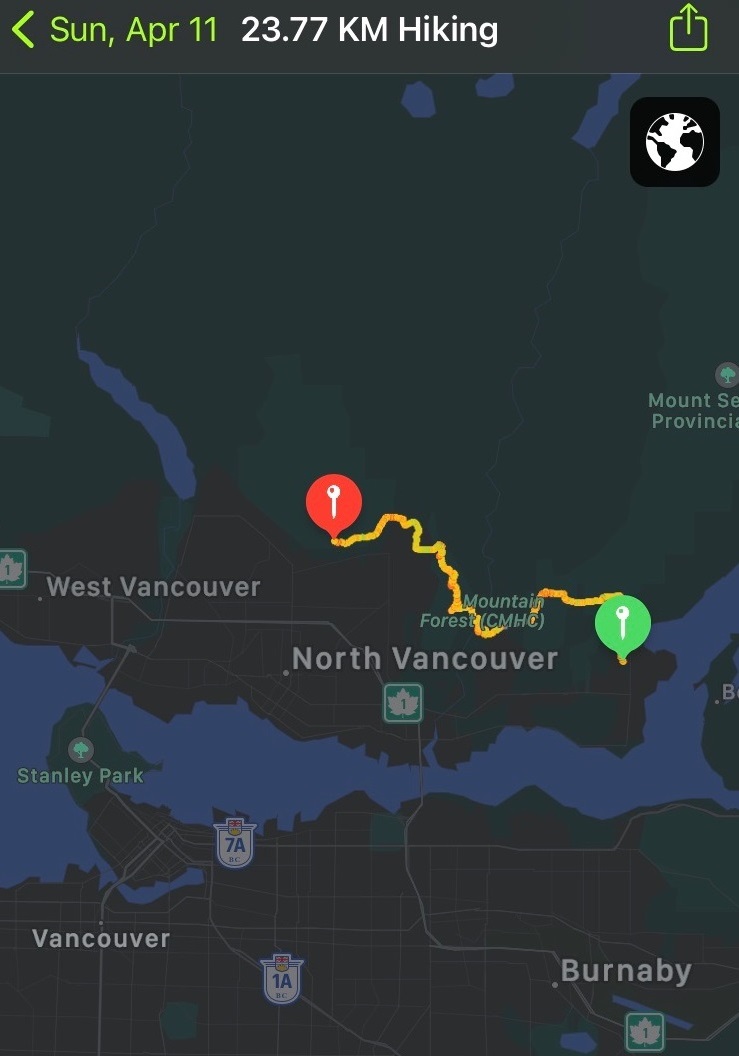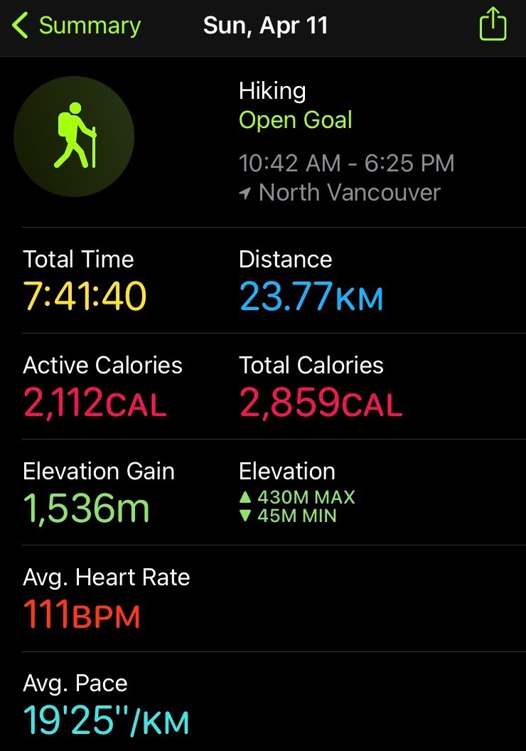 It took us around 4.5 hours, including half an hour rest at the destination, to finish this 14km trail. Pretty easy trail and we met a black bear which gave us the right of way.